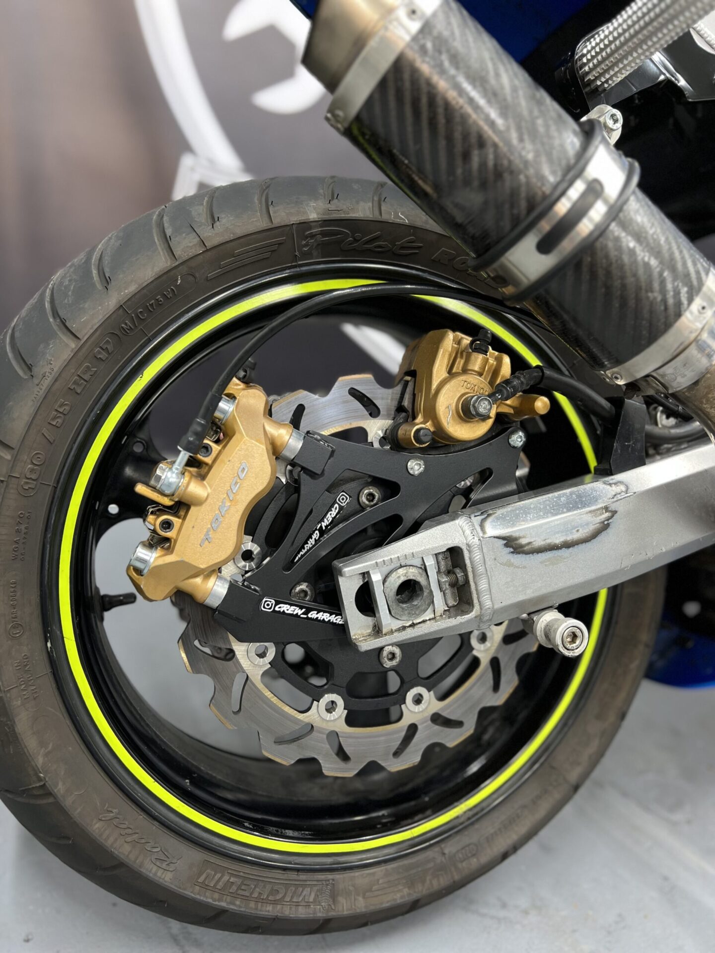 1x radial brake caliper (bolt spacing: 108mm) 1x stock foot brake caliper